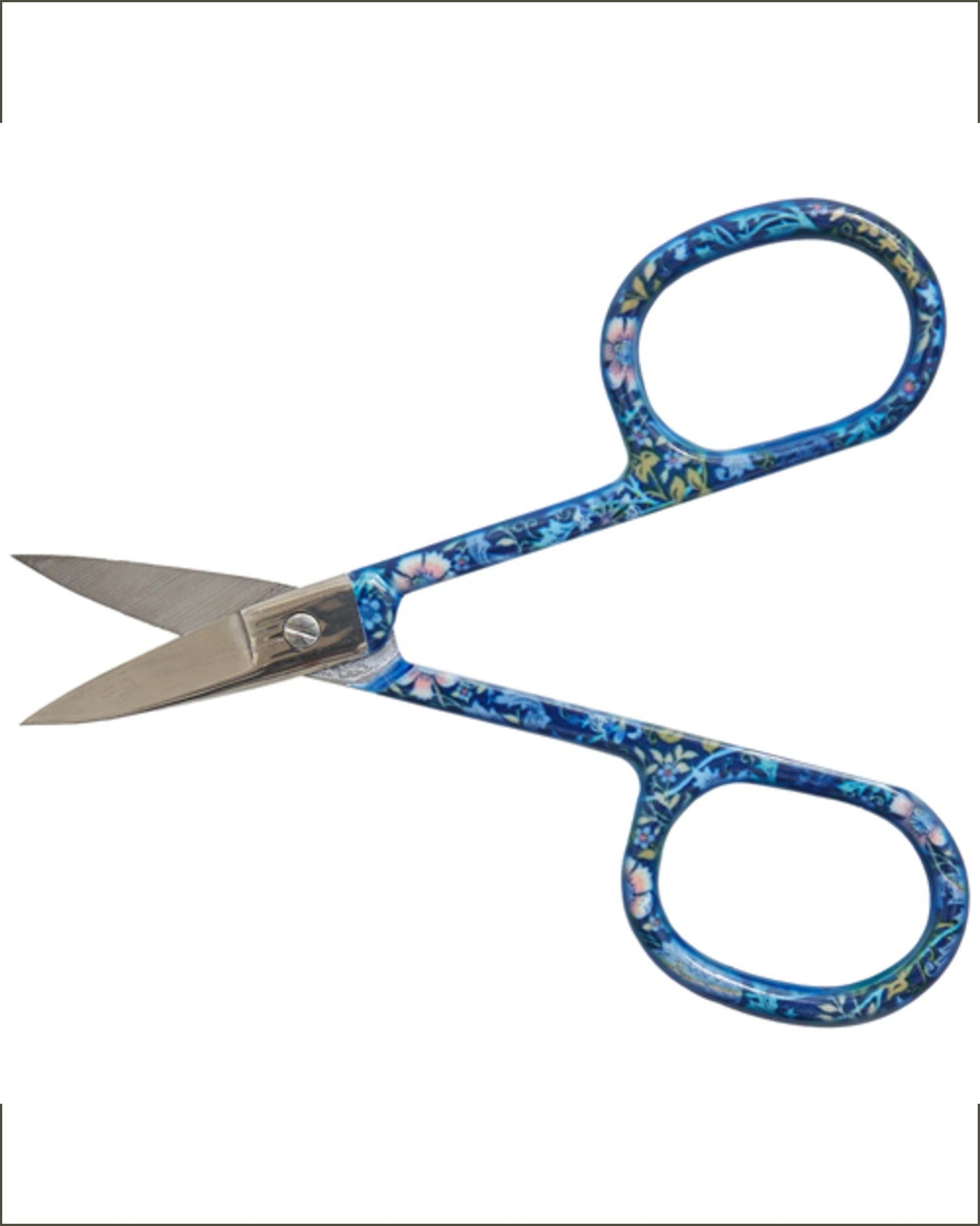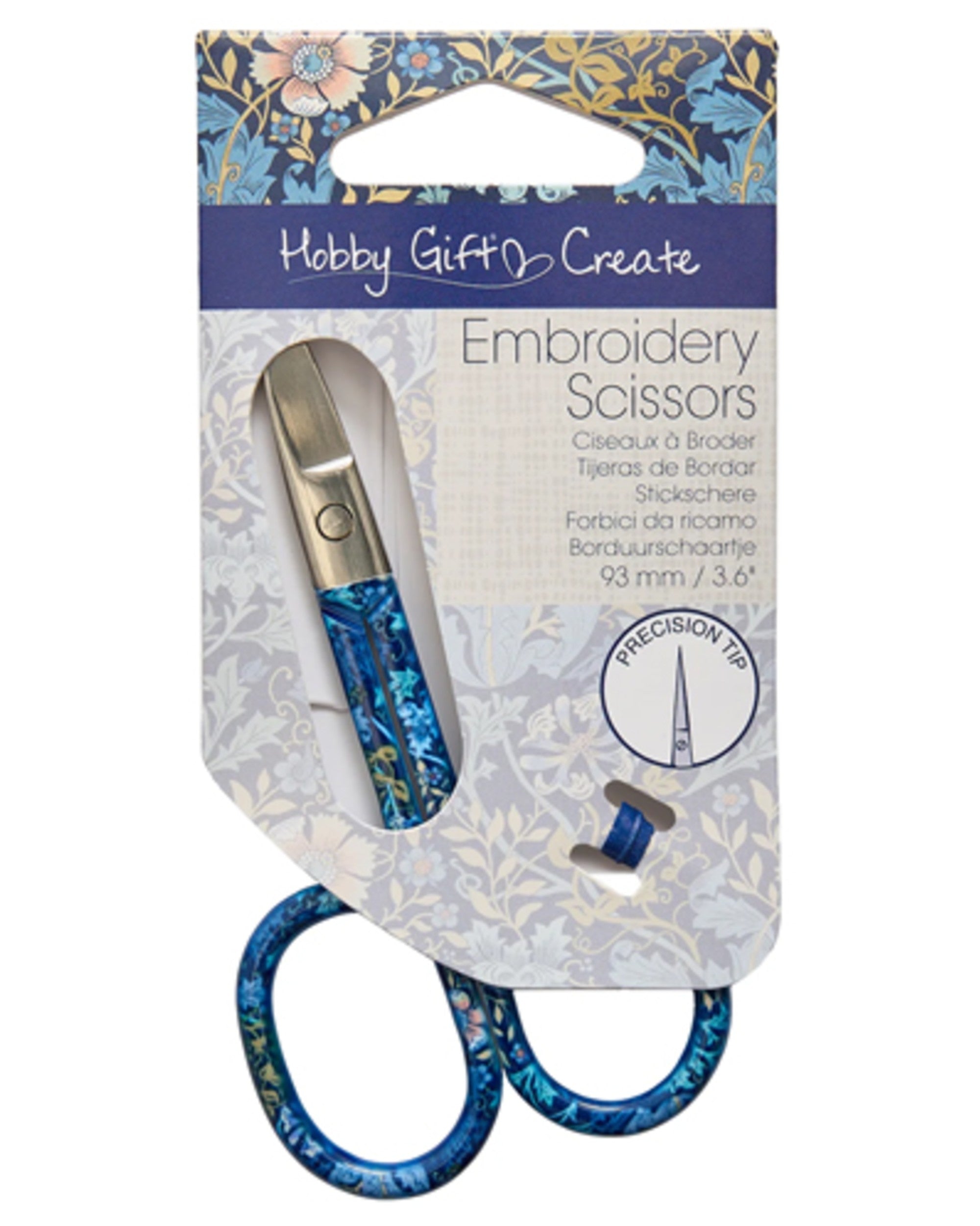 9.3cm/3.6in embroidery scissors in a woodblock Arts & Crafts inspired printed design.Perfect for needlecrafts, fabric and general craft projects.